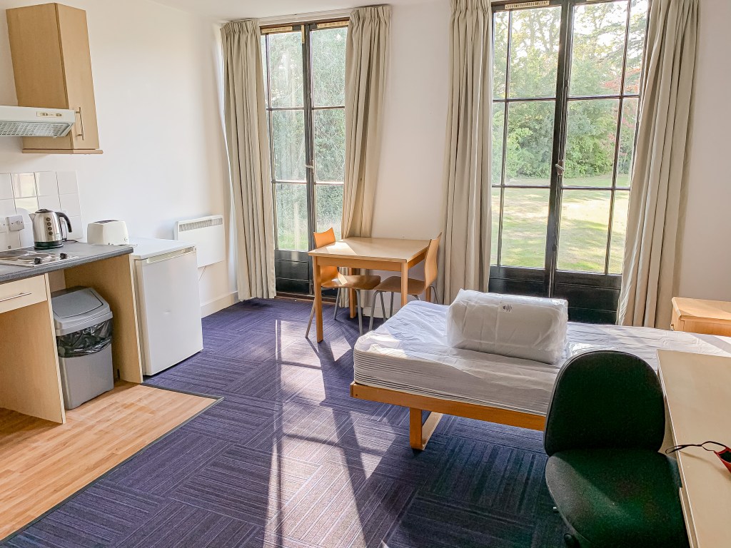 Once I arrived at the University of Reading, I was immediately able to move into my accommodations. I was pleasantly surprised to find out that I had two glass doors that opened out to green space directly from my room. I was also relieved to see that the bedding bundle I had ordered ahead of time was already in the room, largely because this meant that I could go to sleep right away (and make up for my lack of sleep on the plane).