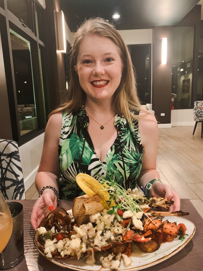 We also enjoyed an incredible dinner at Iguanas Cocina Puertorriqueña. At this restaurant which is located inside the gates of the resort, Bryce enjoyed the catch of the day (swordfish) while I ordered the lobster. (We also had an amazing experience while walking back from this restaurant, because we were able to see some of the wildlife—including many crabs, as well as some of the noisy tree frogs!)